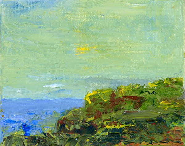 Mary Newbomb "keeps not a sketchbook but a notebook or diary. She fills it with handwritten thoughts and observations that often find their way into the work verbatim. 'Be sure to put it down,' she writes in one diary entry, 'be it squirrel in a woodpile, men with white-toed boots working on a mountain railway, caterpillars hanging stiffly and staring from a laurel bush, the magnitude of the stars - there is no end.'" - Gerry Cordon